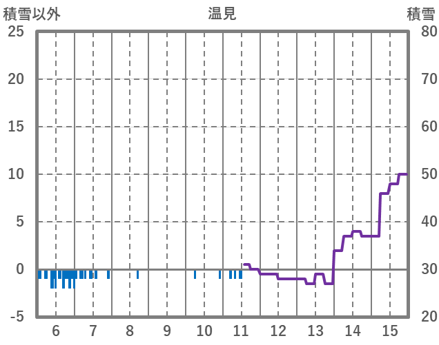 | 日 | 時 | 気温 | 降水 | 風向/風速 | 日照 | 積雪 | 降雪 |
