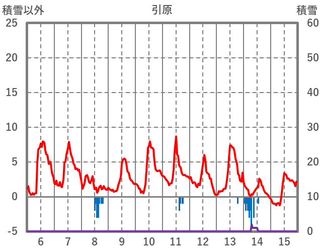| 日 | 時 | 気温 | 降水 | 風向/風速 | 日照 | 積雪 | 降雪 |