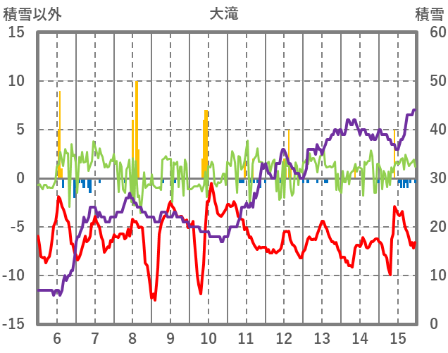 | 日 | 時 | 気温 | 降水 | 風向/風速 | 日照 | 積雪 | 降雪 |