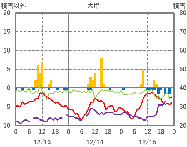 | 日 | 時 | 気温 | 降水 | 風向/風速 | 日照 | 積雪 | 降雪 |