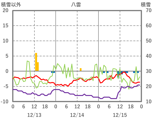 | 日 | 時 | 気温 | 降水 | 風向/風速 | 日照 | 積雪 | 降雪 |
