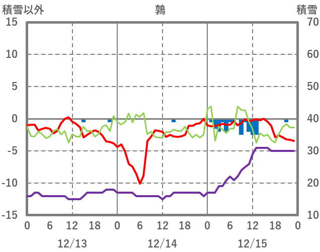 | 日 | 時 | 気温 | 降水 | 風向/風速 | 日照 | 積雪 | 降雪 |