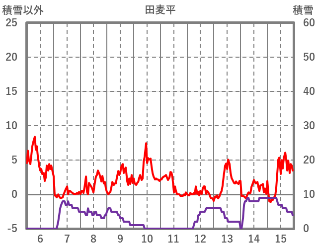 | 日 | 時 | 気温 | 降水 | 風向/風速 | 日照 | 積雪 | 降雪 |