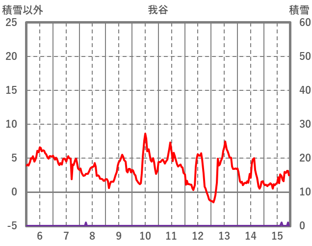| 日 | 時 | 気温 | 降水 | 風向/風速 | 日照 | 積雪 | 降雪 |