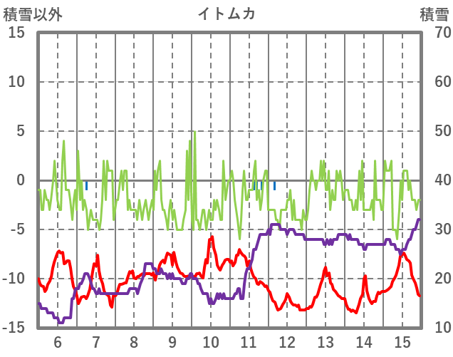 | 日 | 時 | 気温 | 降水 | 風向/風速 | 日照 | 積雪 | 降雪 |