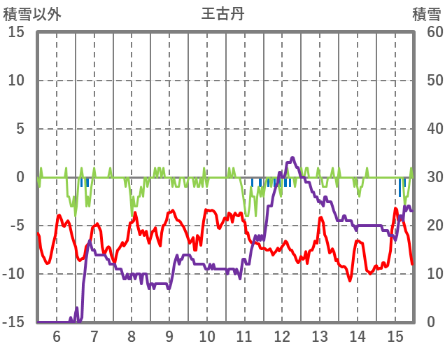| 日 | 時 | 気温 | 降水 | 風向/風速 | 日照 | 積雪 | 降雪 |