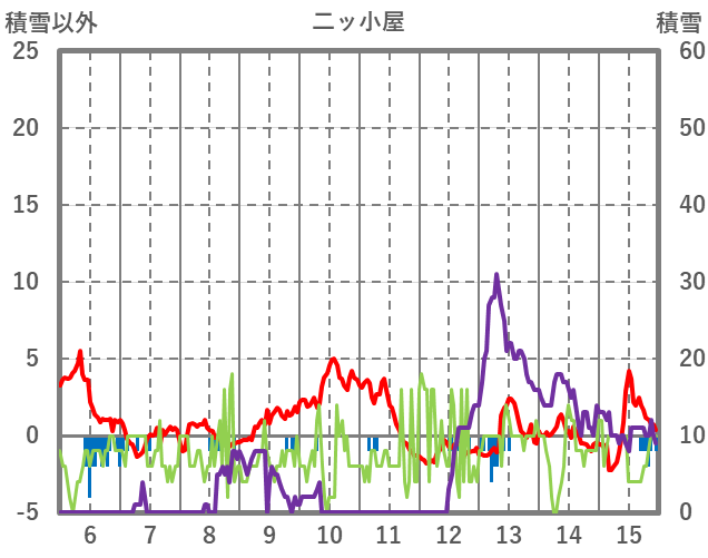 | 日 | 時 | 気温 | 降水 | 風向/風速 | 日照 | 積雪 | 降雪 |