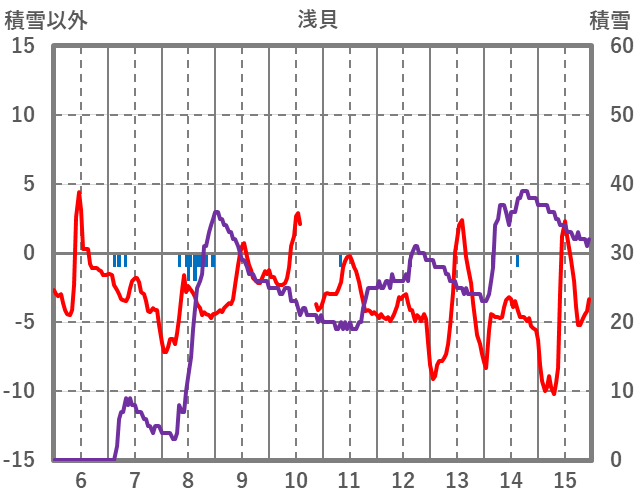 | 日 | 時 | 気温 | 降水 | 風向/風速 | 日照 | 積雪 | 降雪 |