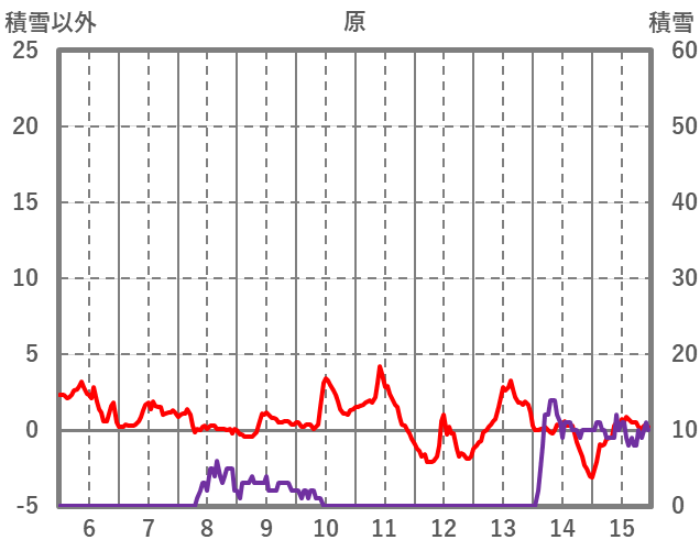 | 日 | 時 | 気温 | 降水 | 風向/風速 | 日照 | 積雪 | 降雪 |