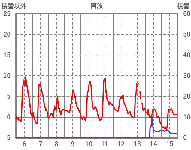 | 日 | 時 | 気温 | 降水 | 風向/風速 | 日照 | 積雪 | 降雪 |