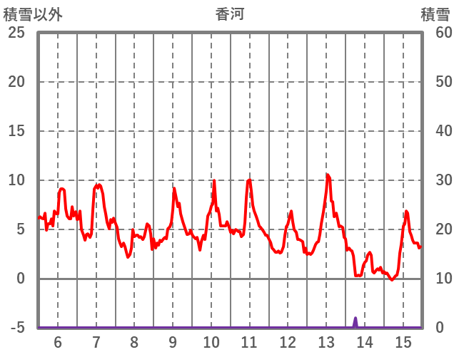 | 日 | 時 | 気温 | 降水 | 風向/風速 | 日照 | 積雪 | 降雪 |