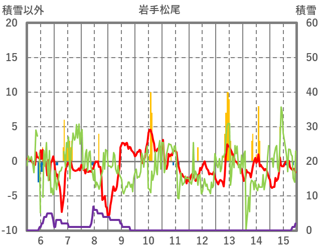 | 日 | 時 | 気温 | 降水 | 風向/風速 | 日照 | 積雪 | 降雪 |