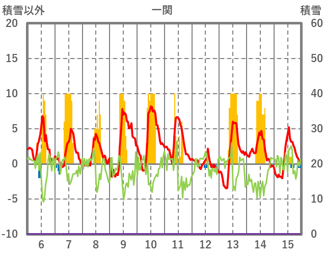 | 日 | 時 | 気温 | 降水 | 風向/風速 | 日照 | 積雪 | 降雪 |