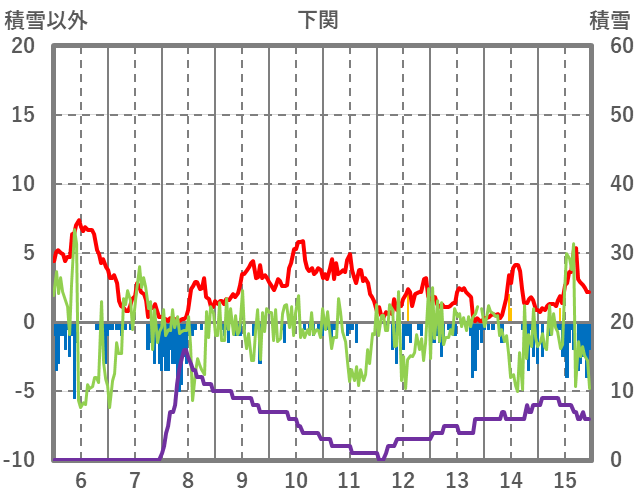 | 日 | 時 | 気温 | 降水 | 風向/風速 | 日照 | 積雪 | 降雪 |