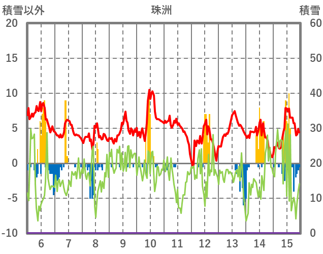 | 日 | 時 | 気温 | 降水 | 風向/風速 | 日照 | 積雪 | 降雪 |