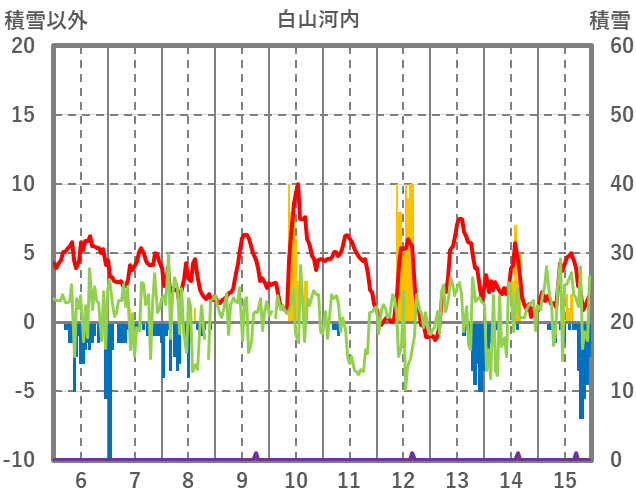 | 日 | 時 | 気温 | 降水 | 風向/風速 | 日照 | 積雪 | 降雪 |