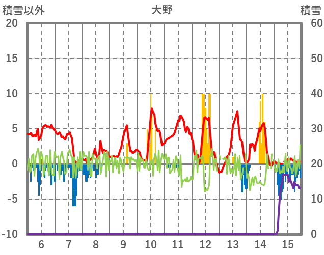 | 日 | 時 | 気温 | 降水 | 風向/風速 | 日照 | 積雪 | 降雪 |