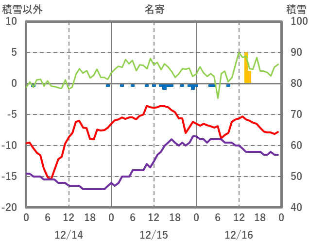 | 日 | 時 | 気温 | 降水 | 風向/風速 | 日照 | 積雪 | 降雪 |
