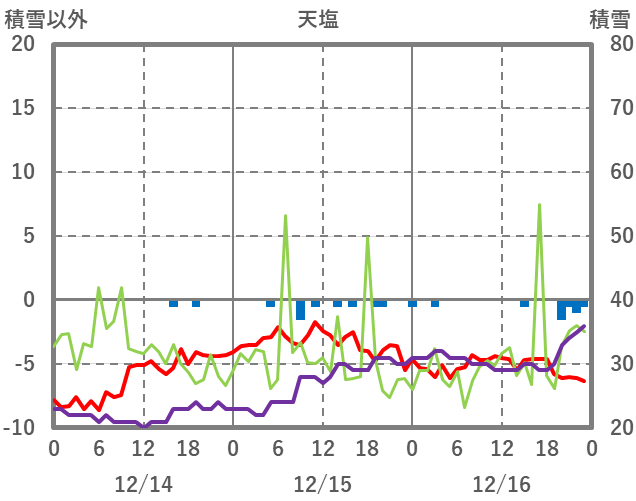 | 日 | 時 | 気温 | 降水 | 風向/風速 | 日照 | 積雪 | 降雪 |