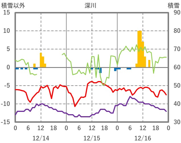 | 日 | 時 | 気温 | 降水 | 風向/風速 | 日照 | 積雪 | 降雪 |