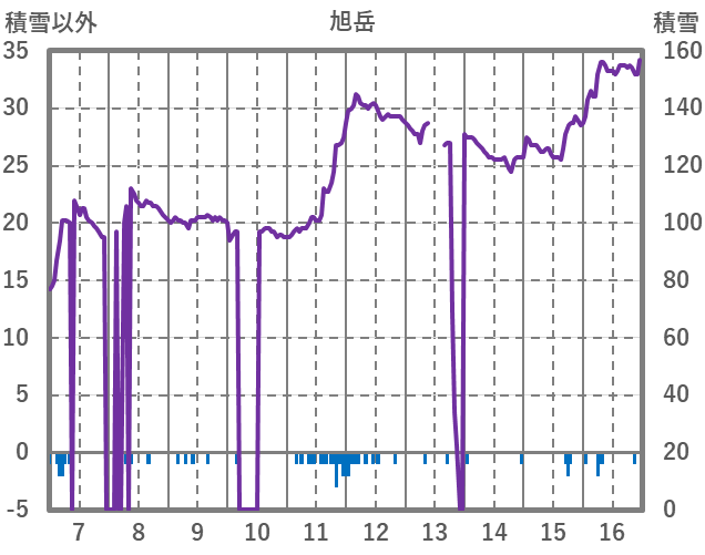 | 日 | 時 | 気温 | 降水 | 風向/風速 | 日照 | 積雪 | 降雪 |