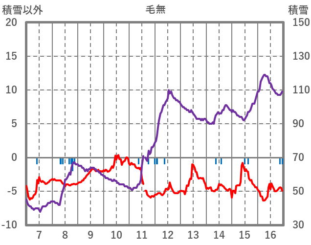 | 日 | 時 | 気温 | 降水 | 風向/風速 | 日照 | 積雪 | 降雪 |
