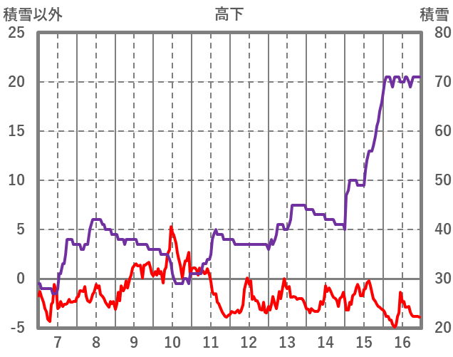 | 日 | 時 | 気温 | 降水 | 風向/風速 | 日照 | 積雪 | 降雪 |