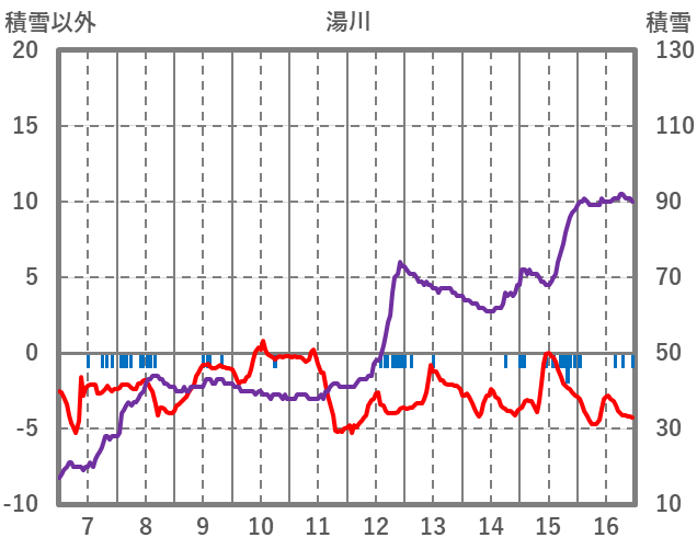| 日 | 時 | 気温 | 降水 | 風向/風速 | 日照 | 積雪 | 降雪 |