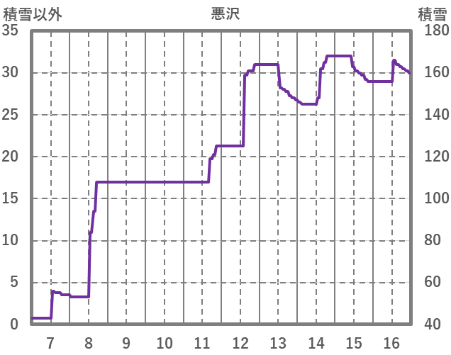 | 日 | 時 | 気温 | 降水 | 風向/風速 | 日照 | 積雪 | 降雪 |