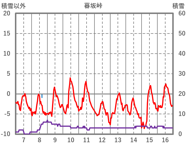 | 日 | 時 | 気温 | 降水 | 風向/風速 | 日照 | 積雪 | 降雪 |