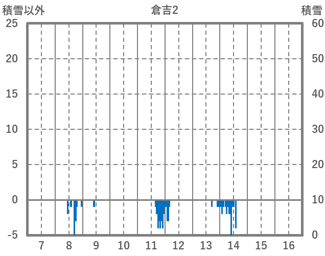 | 日 | 時 | 気温 | 降水 | 風向/風速 | 日照 | 積雪 | 降雪 |
