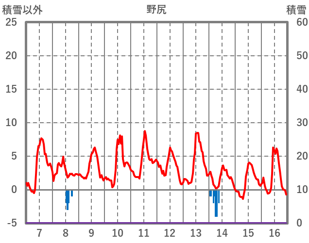 | 日 | 時 | 気温 | 降水 | 風向/風速 | 日照 | 積雪 | 降雪 |