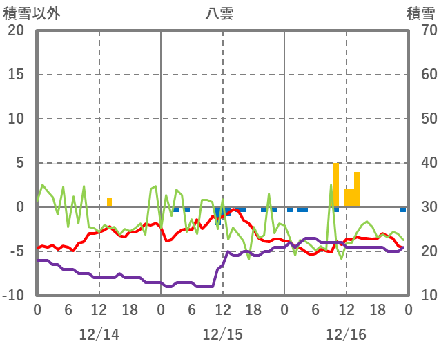| 日 | 時 | 気温 | 降水 | 風向/風速 | 日照 | 積雪 | 降雪 |