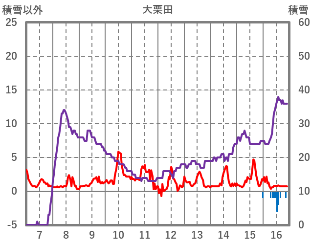 | 日 | 時 | 気温 | 降水 | 風向/風速 | 日照 | 積雪 | 降雪 |