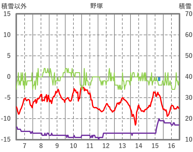 | 日 | 時 | 気温 | 降水 | 風向/風速 | 日照 | 積雪 | 降雪 |