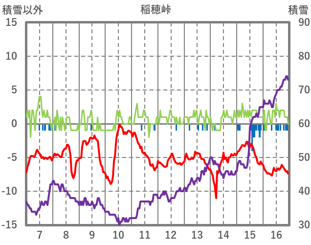 | 日 | 時 | 気温 | 降水 | 風向/風速 | 日照 | 積雪 | 降雪 |