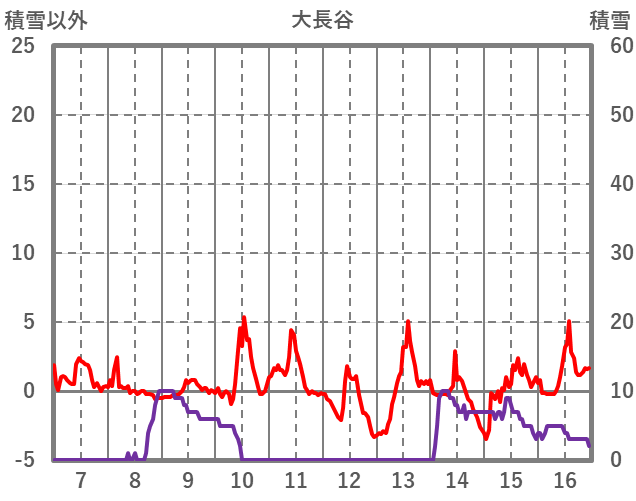 | 日 | 時 | 気温 | 降水 | 風向/風速 | 日照 | 積雪 | 降雪 |