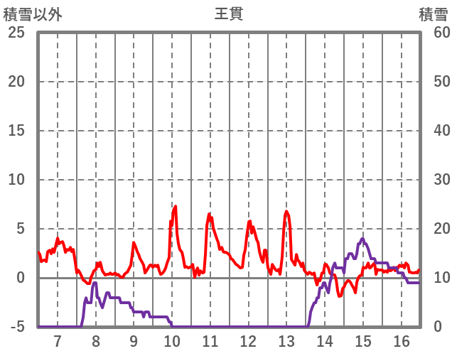| 日 | 時 | 気温 | 降水 | 風向/風速 | 日照 | 積雪 | 降雪 |