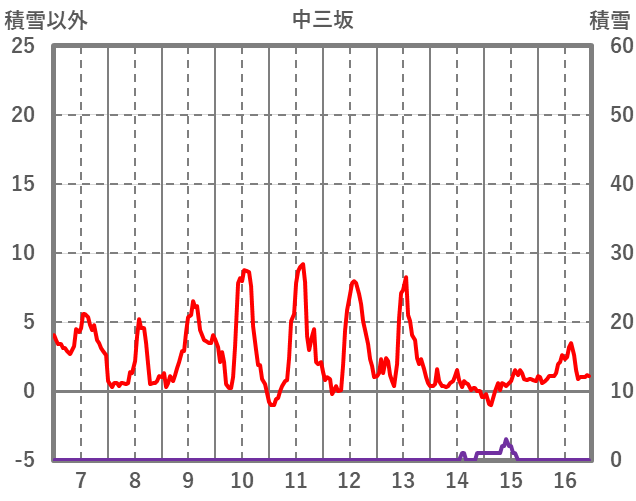 | 日 | 時 | 気温 | 降水 | 風向/風速 | 日照 | 積雪 | 降雪 |