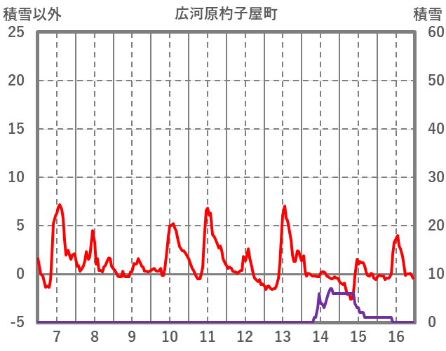| 日 | 時 | 気温 | 降水 | 風向/風速 | 日照 | 積雪 | 降雪 |