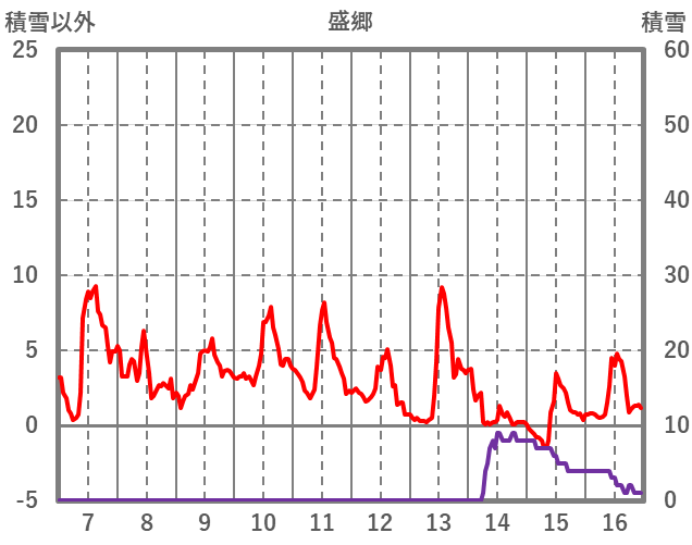 | 日 | 時 | 気温 | 降水 | 風向/風速 | 日照 | 積雪 | 降雪 |