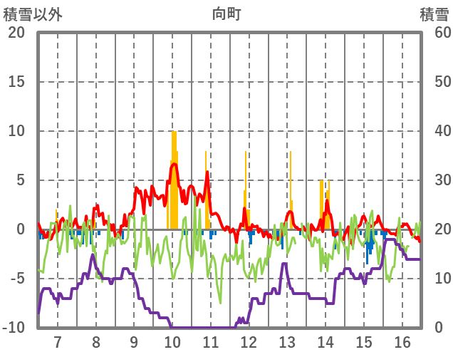 | 日 | 時 | 気温 | 降水 | 風向/風速 | 日照 | 積雪 | 降雪 |