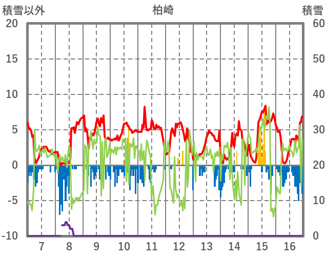 | 日 | 時 | 気温 | 降水 | 風向/風速 | 日照 | 積雪 | 降雪 |