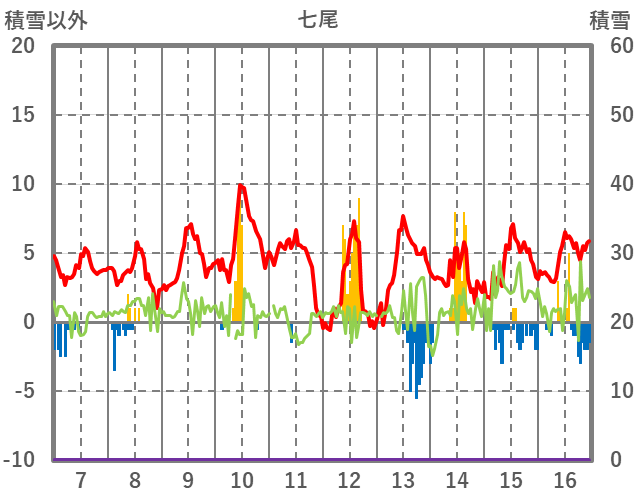 | 日 | 時 | 気温 | 降水 | 風向/風速 | 日照 | 積雪 | 降雪 |