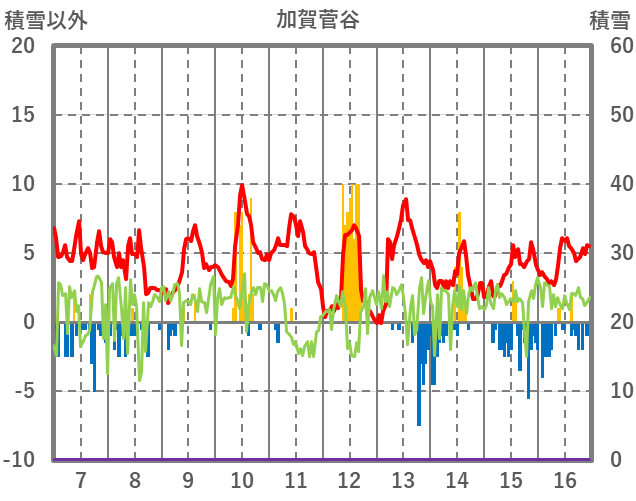 | 日 | 時 | 気温 | 降水 | 風向/風速 | 日照 | 積雪 | 降雪 |