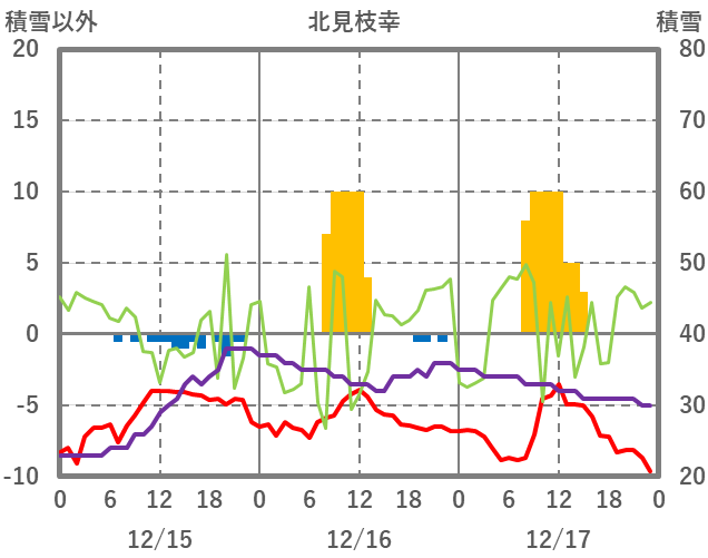 | 日 | 時 | 気温 | 降水 | 風向/風速 | 日照 | 積雪 | 降雪 |