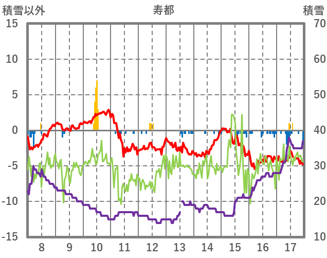 | 日 | 時 | 気温 | 降水 | 風向/風速 | 日照 | 積雪 | 降雪 |