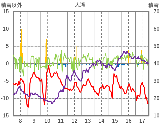 | 日 | 時 | 気温 | 降水 | 風向/風速 | 日照 | 積雪 | 降雪 |