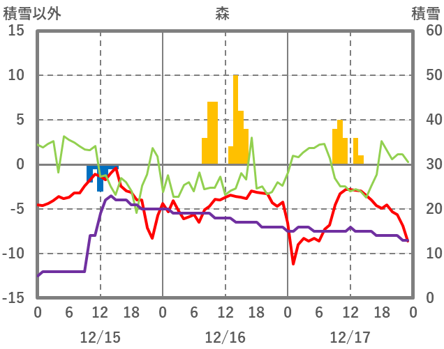 | 日 | 時 | 気温 | 降水 | 風向/風速 | 日照 | 積雪 | 降雪 |