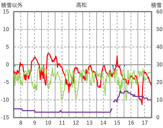 | 日 | 時 | 気温 | 降水 | 風向/風速 | 日照 | 積雪 | 降雪 |